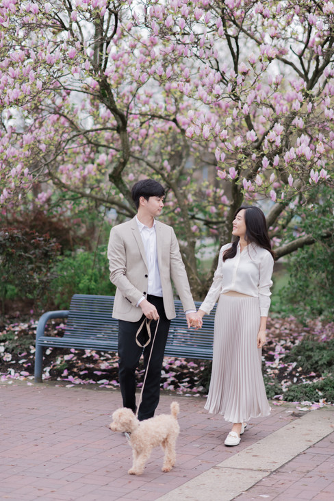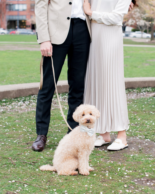 A photoshoot typically lasts ~1-1.5 hours. Your dog doesn’t have to be in all of the photos! It’s a great idea to bring along a friend that can help take care of your dog while you and your partner pose for some portraits of just you two.
